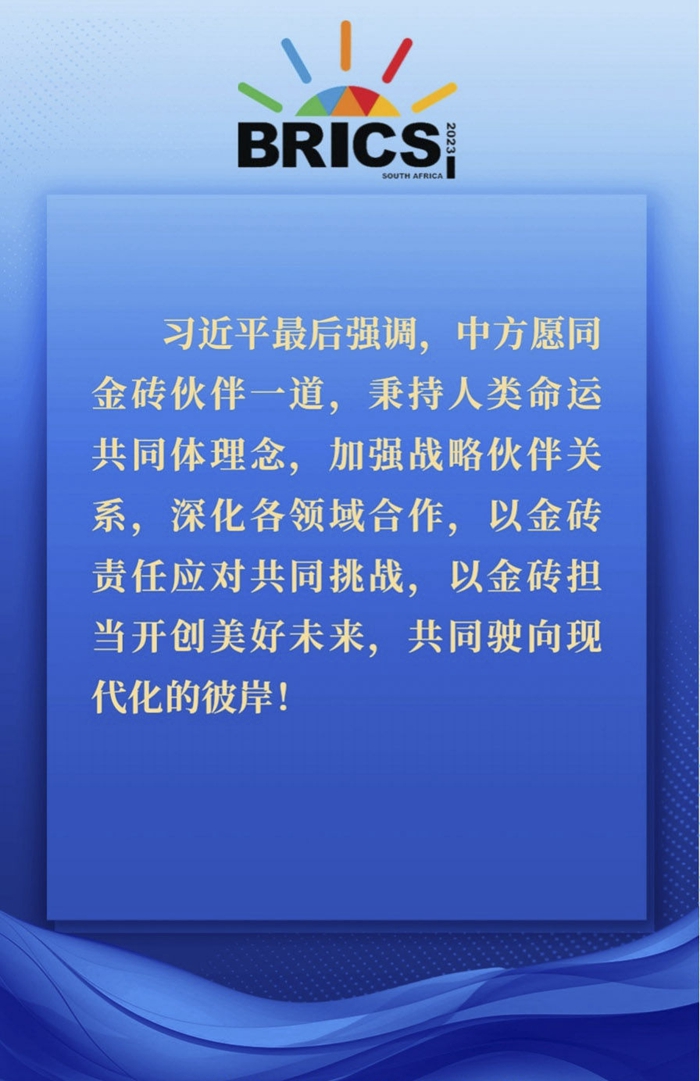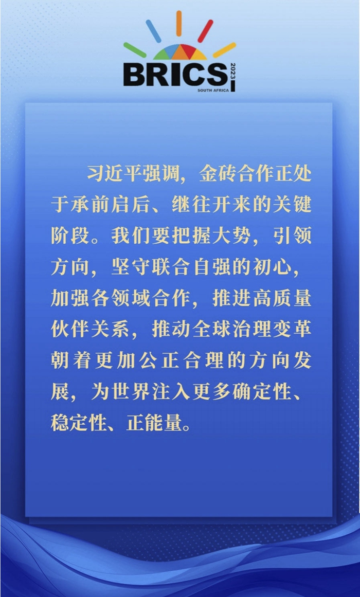 當地時間8月23日上午,金磚國家領導人第十五次會晤在約翰內斯堡杉藤會議中心舉行。南非總統拉馬福薩主持會晤。中國國家主席習近平、巴西總統盧拉、印度總理莫迪和俄羅斯總統普京(線上)出席。