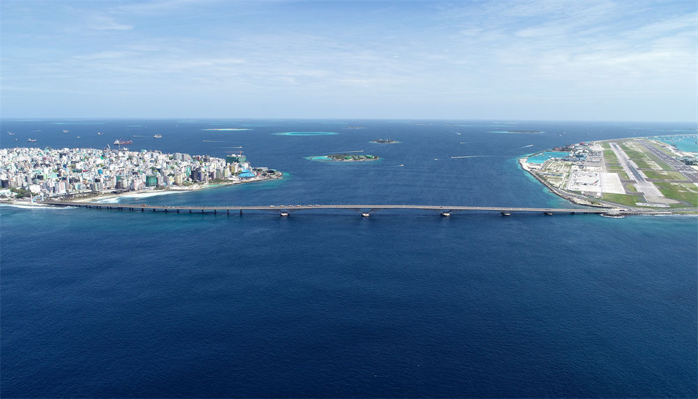 這是航拍的連接馬爾代夫首都馬累和機(jī)場島的中馬友誼大橋(2019年8月30日攝)。新華社發(fā)(王明亮攝)