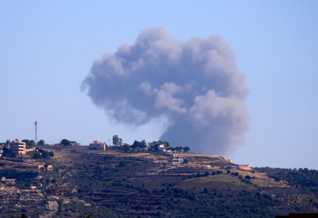 這張11月4日在黎巴嫩南部泰爾哈爾法鎮拍攝的照片顯示,艾塔沙卜山遭以色列戰機空襲后冒出濃煙。新華社發(阿里·哈希紹攝)