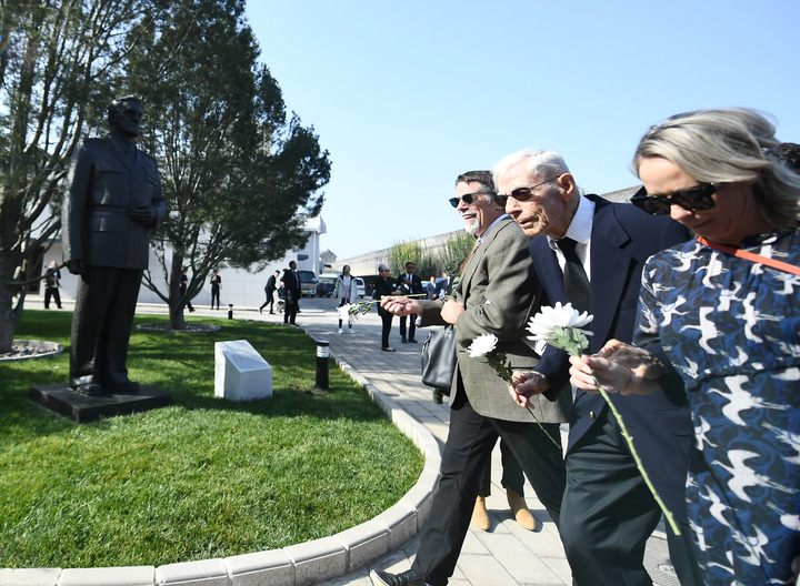 10月30日,在北京,飛虎隊老兵哈里·莫耶(中)向陳納德將軍雕像獻花。