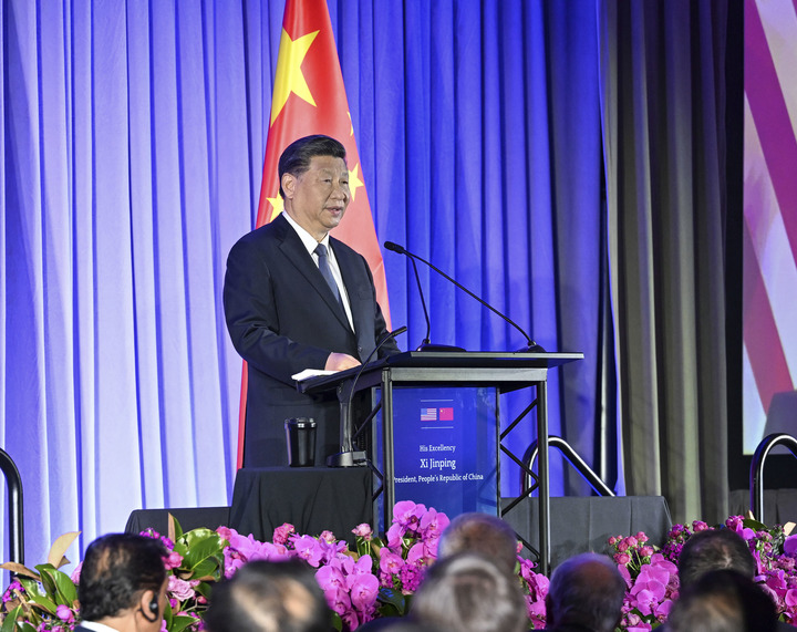 當地時間11月15日晚,國家主席習近平在美國舊金山出席美國友好團體聯合舉行的歡迎宴會。這是習近平發表重要演講。