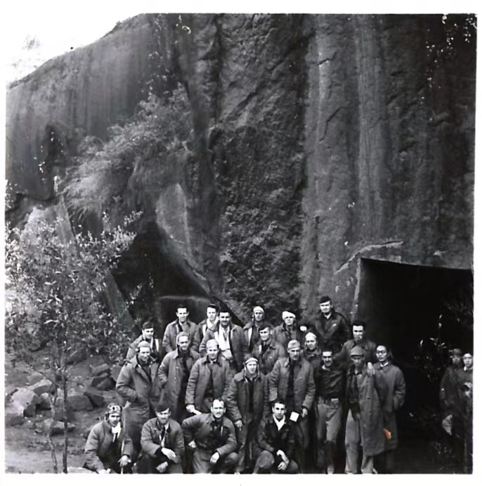 被中國百姓營救的部分美國飛行員集中在位于衢州的空軍航空第13總站門口合影。(資料圖)