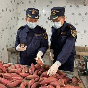 12月11日,水口海關(guān)關(guān)員對進(jìn)口的越南鮮甘薯進(jìn)行現(xiàn)場查驗(yàn)。(水口海關(guān)供圖)
