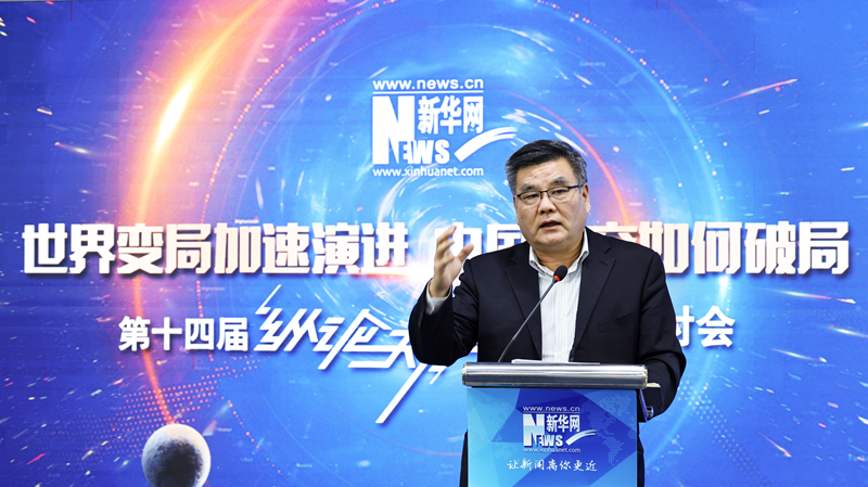 1月9日,新华网第十四届“纵论天下”国际问题研讨会在北京新华网总部举办。图为中国现代国际关系研究院副院长王鸿刚在进行主题演讲。新华网 杨霁昕 摄