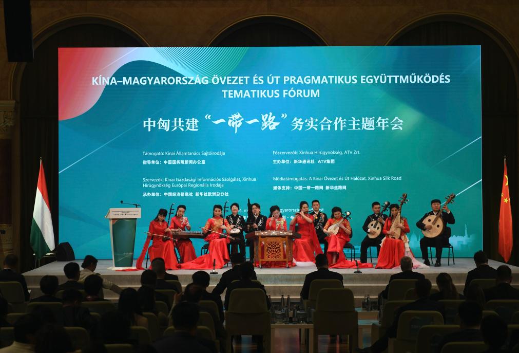 这是5月2日在匈牙利布达佩斯举行的中匈共建“一带一路”务实合作主题年会上拍摄的中国民乐表演。(新华社记者贺灿铃 摄)