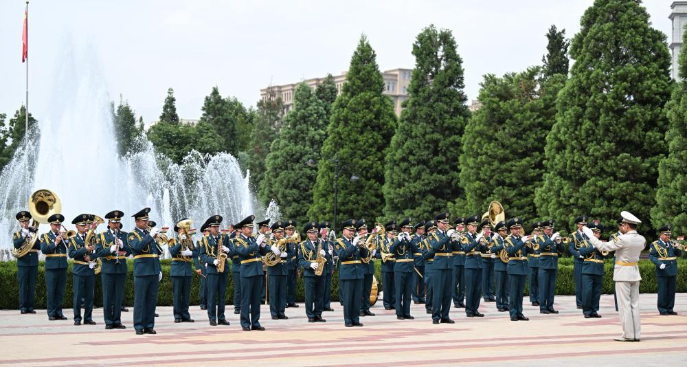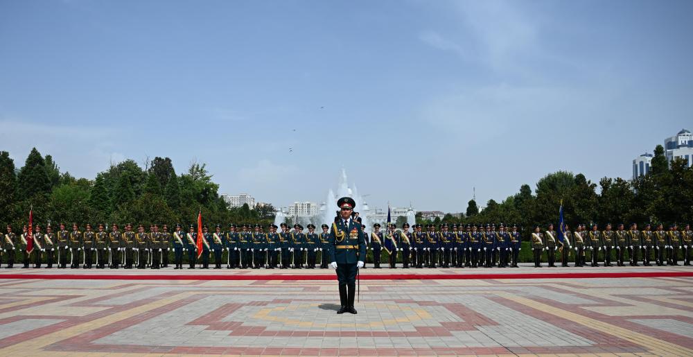 当地时间7月5日,拉赫蒙总统在总统府前广场为习近平主席举行盛大隆重的欢迎仪式。