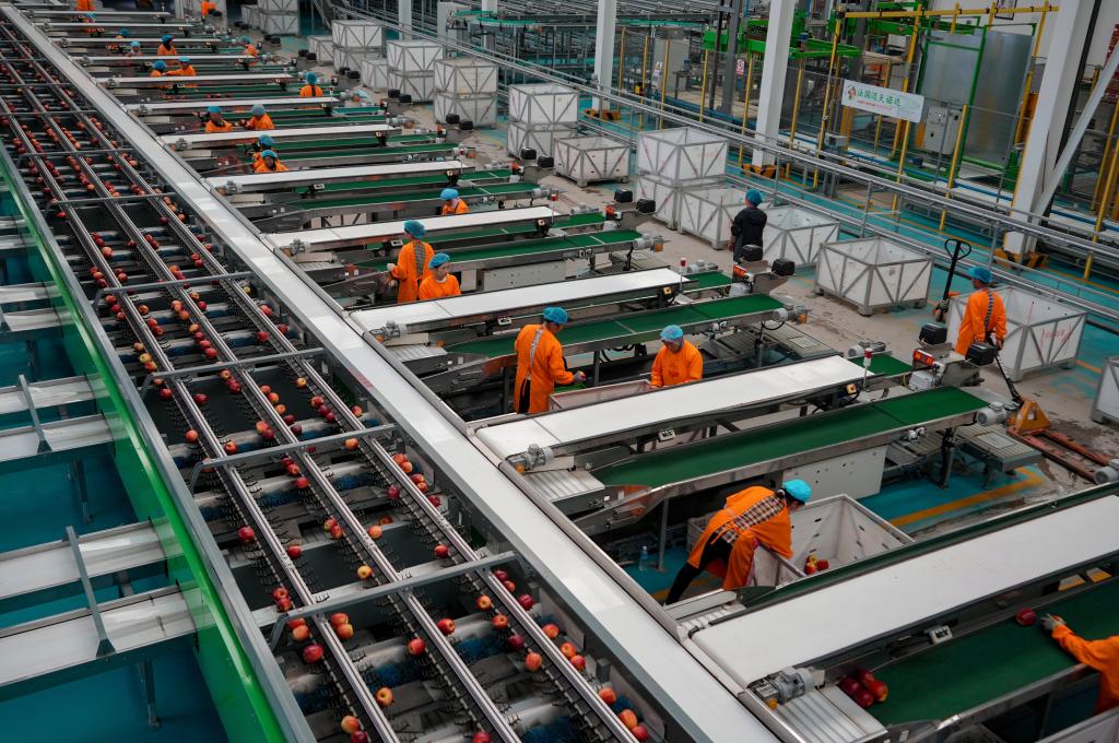 9月29日,工作人员在昭通市超越苹果基地苹果分选线上工作。金秋时节,位于乌蒙山区的云南省昭通市迎来了苹果丰收季。近年来,昭通市大力发展苹果产业,将其作为巩固拓展脱贫攻坚成果、推进乡村振兴的重要支柱产业。2023年,全市苹果综合产值达到130亿元,苹果成为了群众的增收致富果。新华社记者陈欣波摄