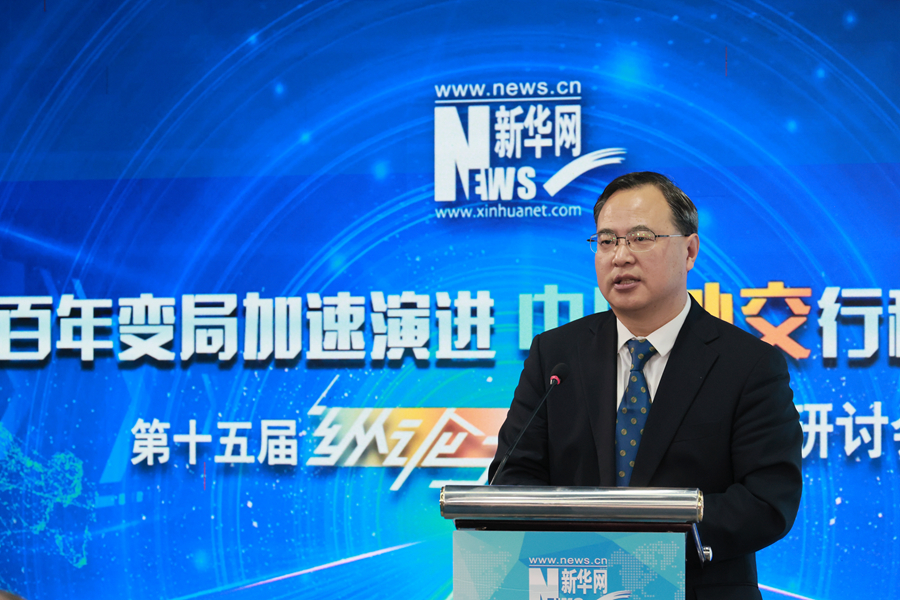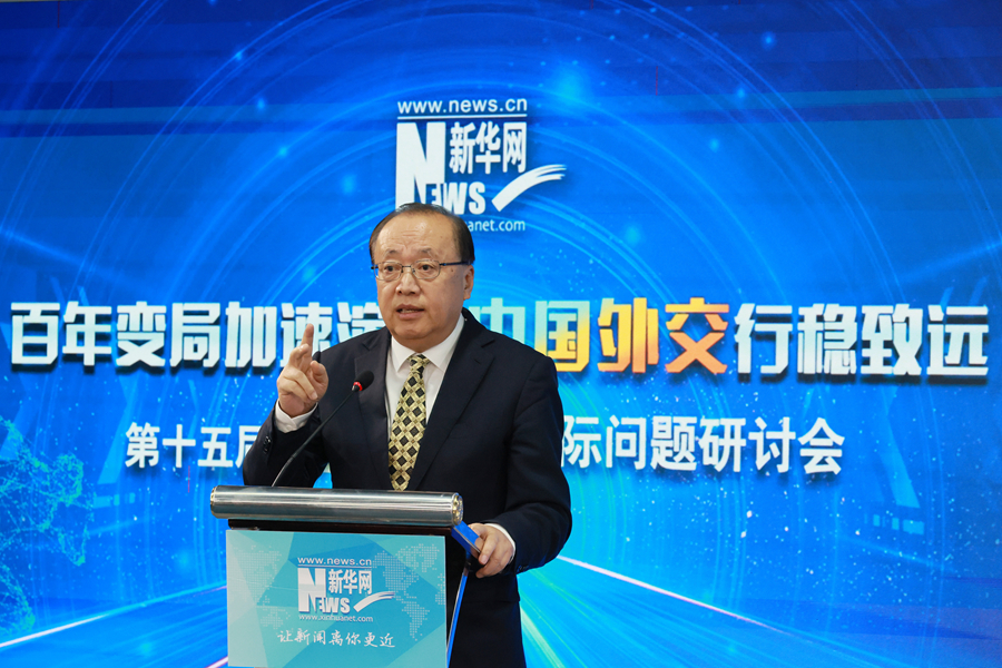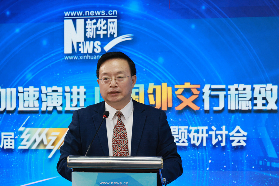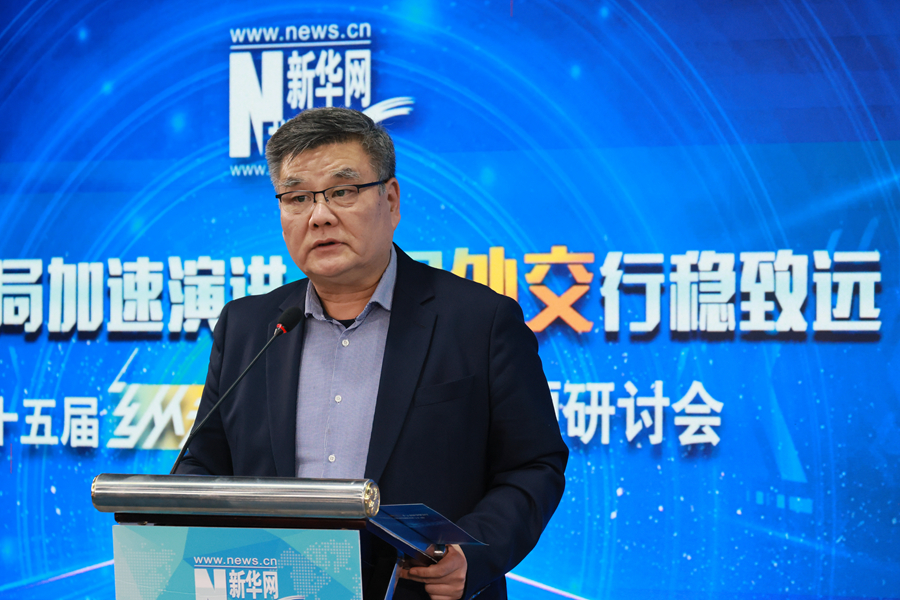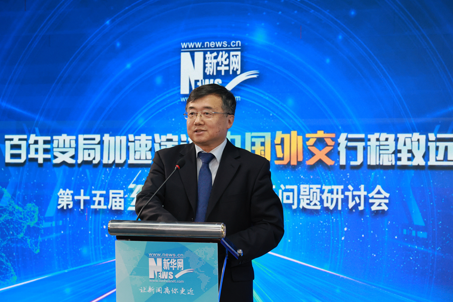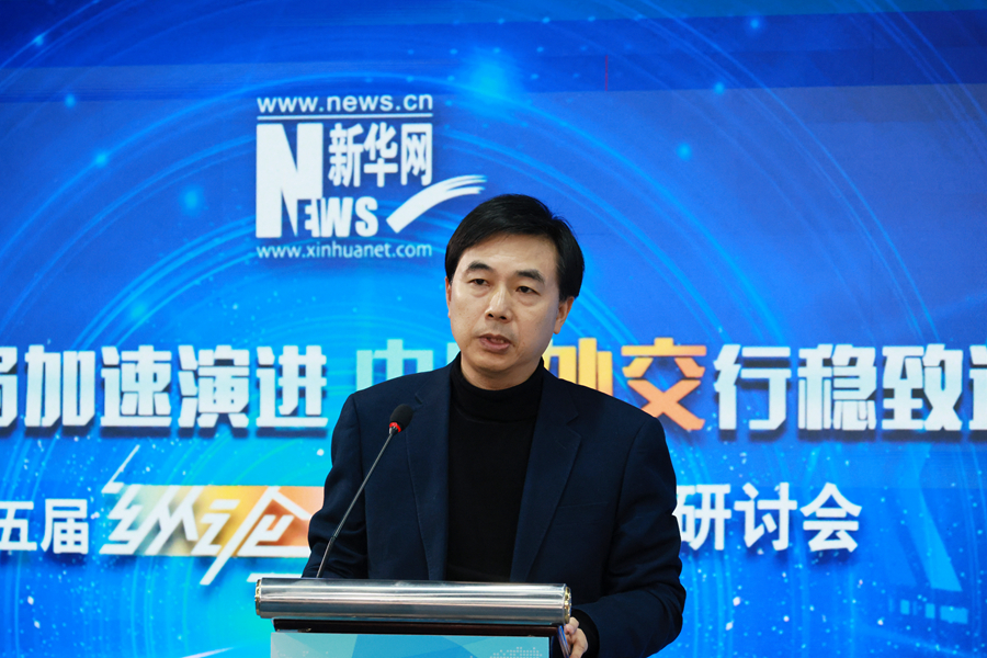 1月2日,新华网第十五届“纵论天下”国际问题研讨会在北京新华网总部举办。图为外交学院院长、中国国际关系学会副会长王帆在进行下半场主题演讲。新华网 杨霁昕 摄