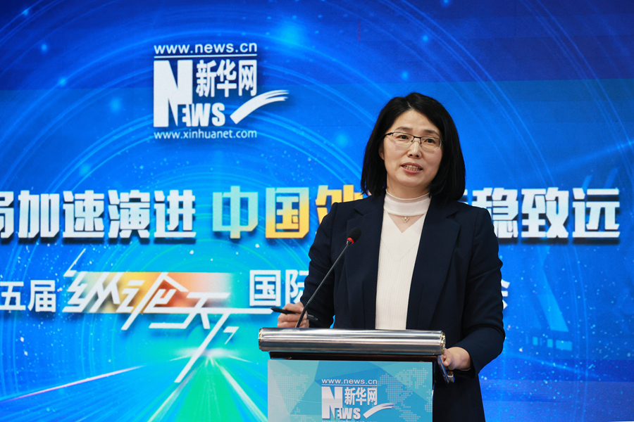 1月2日,新华网第十五届“纵论天下”国际问题研讨会在北京新华网总部举办。图为中国国际问题研究院副院长刘卿在进行下半场主题演讲。新华网 杨霁昕 摄