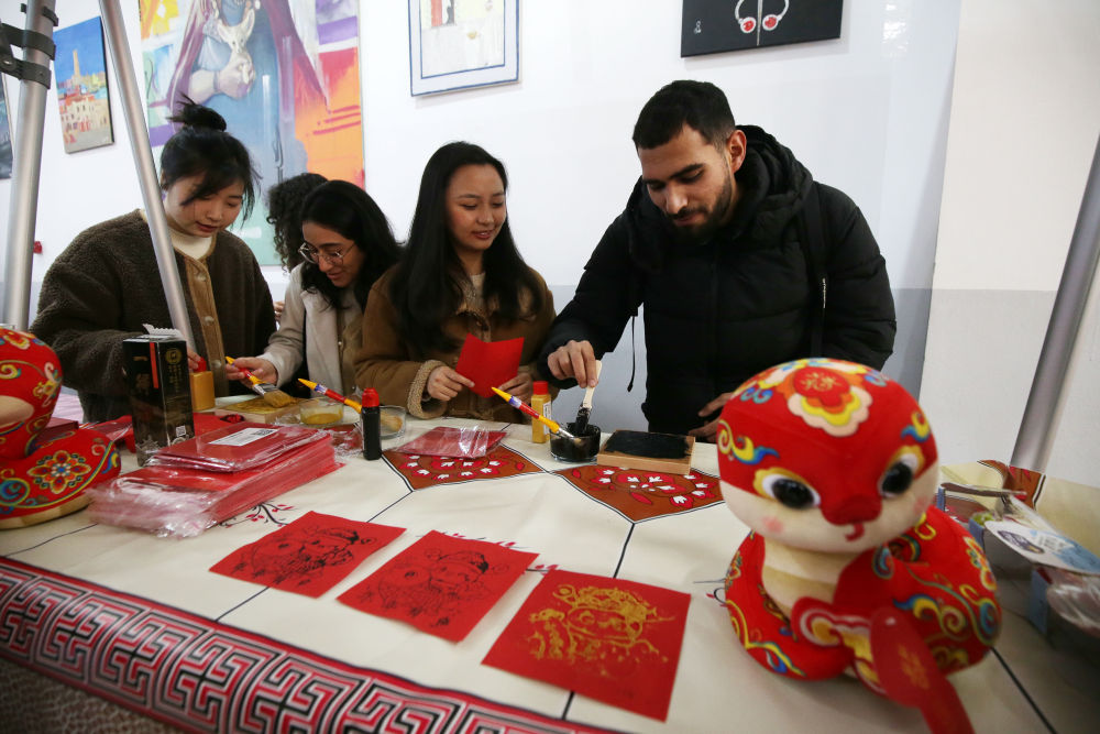在埃及吉萨,“尼罗泛龙舟”春节主题活动设置了龙舟拔河赛、龙舟竞速赛等环节,让人们感悟不同文化传统之间的交融;在阿尔及利亚,“欢乐春节——中华文化进校园”活动走进阿尔及尔第二大学,学生伊萨姆说,在剪纸过程中体味到“宁静和谐的东方哲理”;在匈牙利布达佩斯中国文化中心,中匈两国非遗代表性传承人分别介绍苏绣和马丘刺绣的历史传统与艺术特点,并指导观众练习刺绣技法;在英国伦敦,曾在中国生活多年的英国人理查德·霍利在“欢乐春节——非遗雅集”活动上用毛笔写下“福”和“蛇”两个汉字;在突尼斯首都突尼斯市,当地民众品尝中国美食,学编中国结,拓印“福”字;在约旦费城大学,师生们体验中国棋艺、茶艺,通过VR视频观赏中国山河美景;在赞比亚少林寺文化中心,人们排起长队,敲钟祈福……