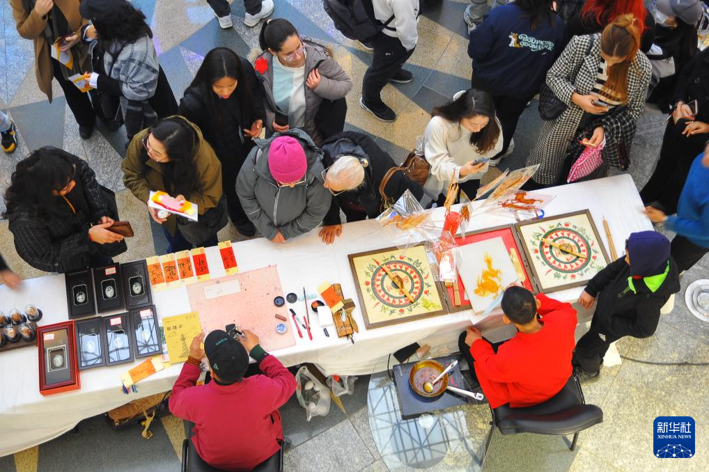 在突尼斯市文化城举办的“你好!中国”欢乐春节文旅推介活动上,数百名突尼斯民众和在突华侨华人热情参加。中突观众共同欣赏舞蹈、二胡独奏,与绳编、糖画、剪纸等手艺人现场互动,还品尝了鸡丝凉面、钵钵鸡、酸辣凉粉等美食小吃。