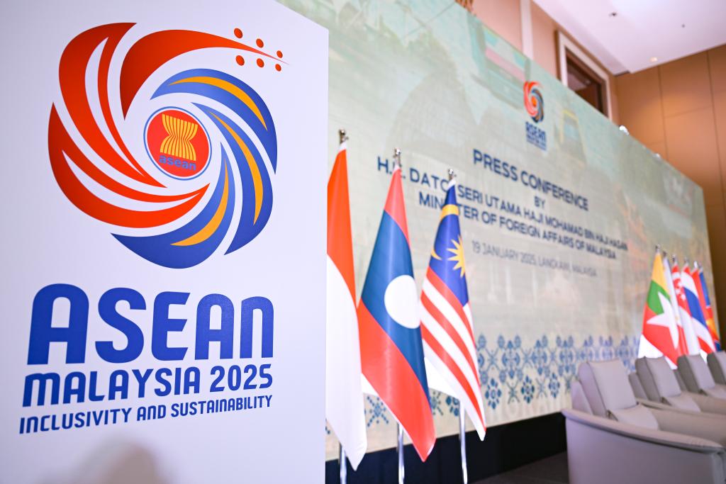 这是1月19日在马来西亚吉打州兰卡威拍摄的东盟国家外长非正式会议新闻发布会现场。新华社记者 程一恒 摄