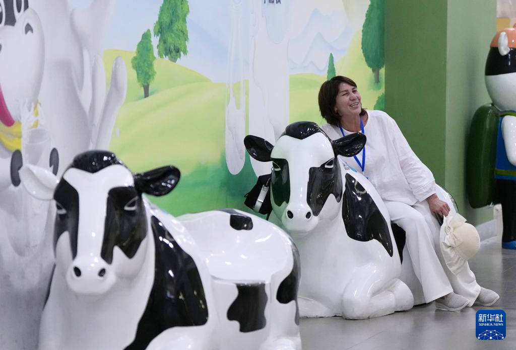 6月17日,培训班哈萨克斯坦籍学员绍哈耶娃·萨吾丽在位于陕西省渭南市的中垦华山牧乳业有限公司参观。