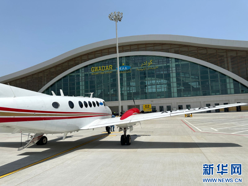 2024年6月4日,在位于巴基斯坦瓜达尔的瓜达尔新国际机场,进行校飞试验的飞机成功着陆后停在停机坪上。新华社发(中国援巴基斯坦瓜达尔新国际机场项目管理组供图)