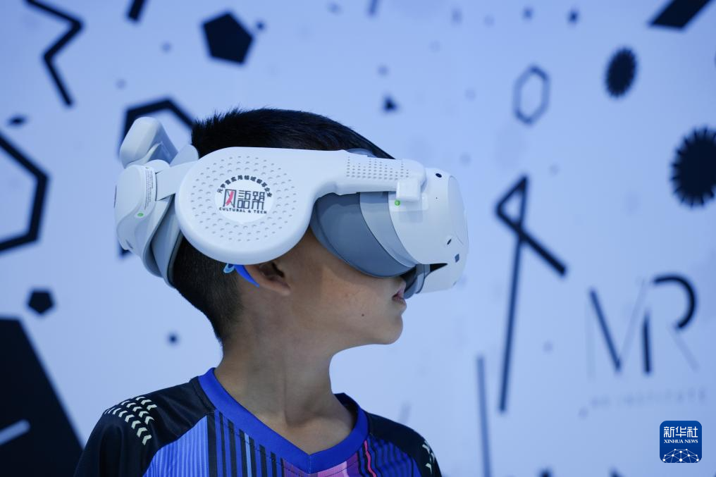 9月12日,在北京首钢园,参展者在2025年服贸会文旅服务展馆北京市文物局展台体验《看·见殷商》MR沉浸式观展。