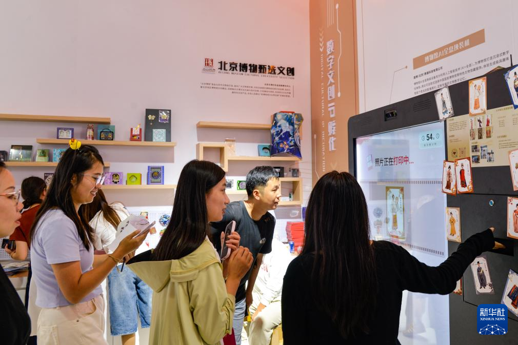 9月13日,在北京首钢园,参展者在2025年服贸会文旅服务展馆北京市文物局展台观看、了解数智赋能展览展示。