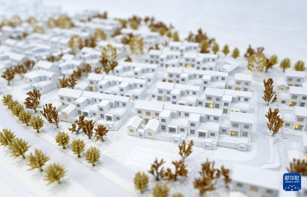 9月12日在服贸会工程咨询与建筑服务专题展区中建一局展位拍摄的北京门头沟沿河口村装配式绿色农宅模型。