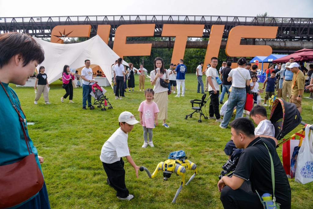 小朋友与具身智能“AI小蚂ROBOT”互动。新华社记者 徐钦 摄