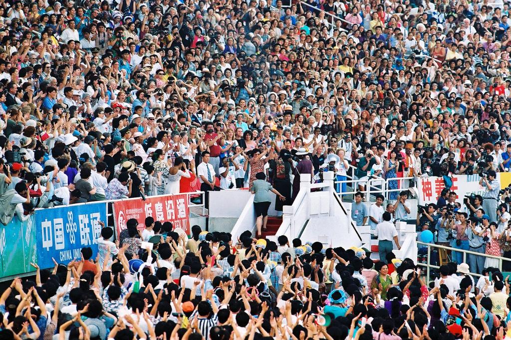 1995年9月4日,中国政府为联合国第四次世界妇女大会召开在北京人民大会堂举行欢迎仪式。这是欢迎仪式上的文艺演出场景。