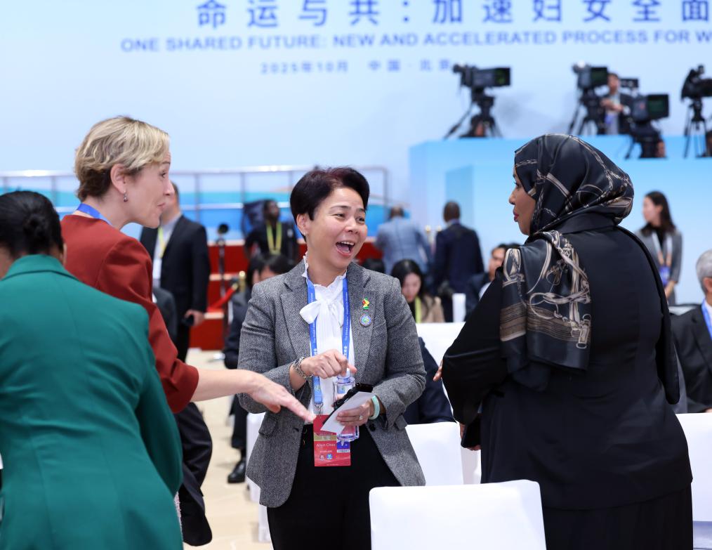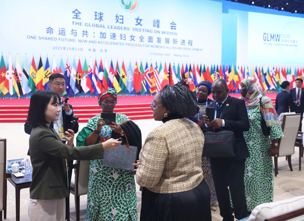 2025年10月13日,几位非洲代表来到全球妇女峰会开幕式会场。