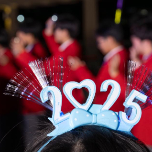 11月10日,在国家会展中心(上海)举行的第八届进博会志愿者离园仪式上,一名“小叶子”戴着“2025”字样的发箍。