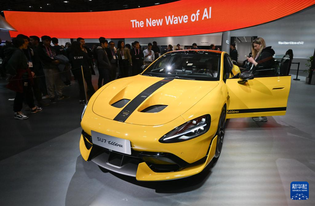 3月5日,在西班牙巴塞罗那举行的2026年世界移动通信大会上,人们参观一款小米汽车。