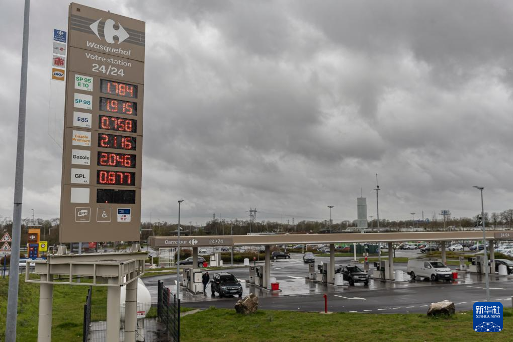 这是3月11日在法国北部的瓦斯凯勒拍摄的一处加油站。