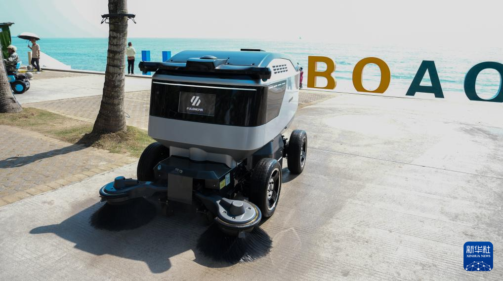 智能清扫机器人在海南省琼海市博鳌镇街头作业(3月25日摄)。