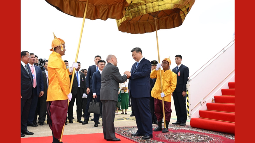 四月的金边,喜庆洋溢。国家主席习近平在柬埔寨传统新年之际应邀对柬进行国事访问。访问期间,习近平主席同柬埔寨领导人共叙友谊、共谋发展。两国领导人共同见证中柬双方交换30多份双边合作文本,涵盖产供链合作、人工智能、发展援助、海关检验检疫、卫生、新闻等领域。两国发表关于构建新时代全天候中柬命运共同体、落实三大全球倡议的联合声明。中柬命运共同体建设迈出新步伐。 [详细]