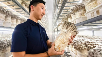 在廣西貴港市港北區(qū)的廣西匯菇源生物技術(shù)有限公司生產(chǎn)車間內(nèi),整齊排列的工廠化培育菌罐好似一排排哨兵,在可調(diào)節(jié)燈光的照射下茁壯成長。