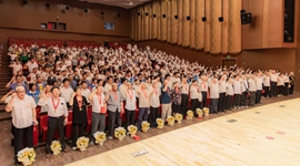 ??“往年,‘光榮在黨50年’紀(jì)念章多由湖西街道各社區(qū)舉辦儀式頒發(fā)。”湖西街道黨工委副書記蘇芳說,“今年,我們擴(kuò)大規(guī)模,讓這份榮譽(yù)更顯莊重。經(jīng)過調(diào)研發(fā)現(xiàn),今年符合頒發(fā)條件的老黨員們大多身體康健。因此,我們邀請27位老黨員參加這次頒發(fā)儀式,并在長影音樂廳中安排了一堂‘音樂黨課’。”