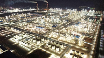 夜幕降臨,寧夏銀川市向東50公里,位于毛烏素沙地邊緣的寧東能源化工基地?zé)艋鹜鳌U嫉?60公頃,敷設(shè)電纜2.1萬公里,有工藝設(shè)備1.3萬臺(tái)、閥門25萬臺(tái)的國家能源集團(tuán)寧夏煤業(yè)400萬噸/年煤炭間接液化示范項(xiàng)目(簡稱“寧煤400萬噸煤制油項(xiàng)目”)……一座“超級工廠”赫然眼前。