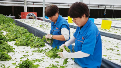 走進(jìn)浙江省余姚市梁弄鎮(zhèn)橫坎頭村“紅芯植物工廠”的種植大棚,陣陣蔬果清香撲面而來,陽光透過棚頂?shù)谋∧⑾拢瑹o土栽培架上一簇簇蔬果長勢喜人。