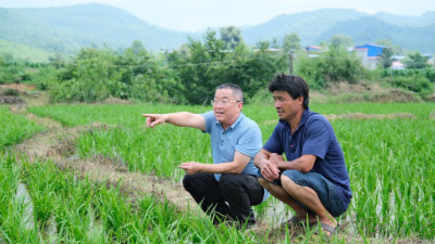 盛夏時(shí)節(jié),嫩綠的稻苗在一碧如洗的天空下?lián)u曳,阡陌小徑貫穿稻田,形成一幅如詩如畫的耕種畫卷。廣西壯族自治區(qū)全州縣東山瑤族鄉(xiāng)白竹村村民唐增亮撥開稻苗,一旁的駐村第一書記莫日發(fā)叮囑道:“今年也要記得使用農(nóng)家肥,高殘留農(nóng)藥可過不了檢。”
