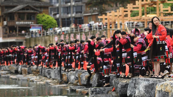 平塘,位于貴州黔南布依族苗族自治州的一座小城。站在平塘塘邊鎮(zhèn)的山脊上,一幅地勢(shì)高低相差千米、沖擊力極強(qiáng)的大自然畫卷映入眼簾。平塘縣地勢(shì)西北高東南低,喀斯特區(qū)域面積2455.23平方公里,占縣域國(guó)土面積的87.20%。這里就像奇幻的“喀斯特秘境”。群山如同綠色的海洋,“波濤”之間有一片“漏斗”狀的天坑群。