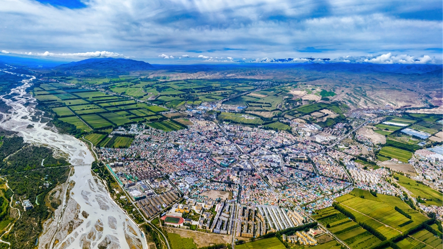 從空中俯瞰,在群山環(huán)繞之下,青海省玉樹(shù)藏族自治州玉樹(shù)市密集的建筑在山谷中拔地而起,巴塘河宛如翡翠玉帶穿城而過(guò)。從長(zhǎng)江源頭奔涌而下的水流在這里形成一大片濕地,玉樹(shù)市仿佛是一座鑲嵌在濕地里的高原小城。玉樹(shù)市位于青藏高原腹地,平均海拔超過(guò)4000米,沒(méi)有來(lái)過(guò)這里的人心態(tài)首先便是對(duì)高海拔的恐懼,但真正走入這座城市,會(huì)發(fā)覺(jué)仿佛進(jìn)入江南之地。