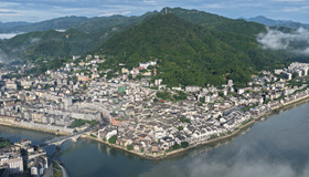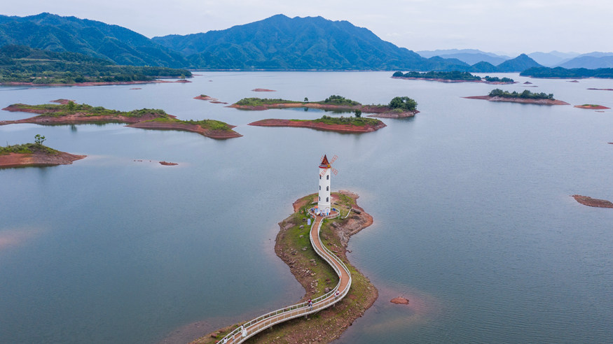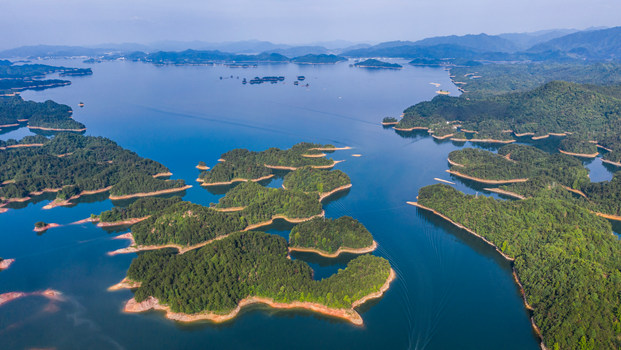 從空中俯瞰,淳安境內(nèi)發(fā)達(dá)的水系猶如一根巨大的羽毛,靜靜安臥在浙江西部連綿起伏的丘陵之中。羽毛的枝干,是自西北向東南穿越而過(guò)的新安江。在羽毛的中心位置,一個(gè)擁有1078座島嶼,容量足以裝下3000多個(gè)西湖的巨型人工湖——千島湖,成為現(xiàn)代淳安的“靈魂”。