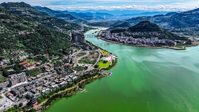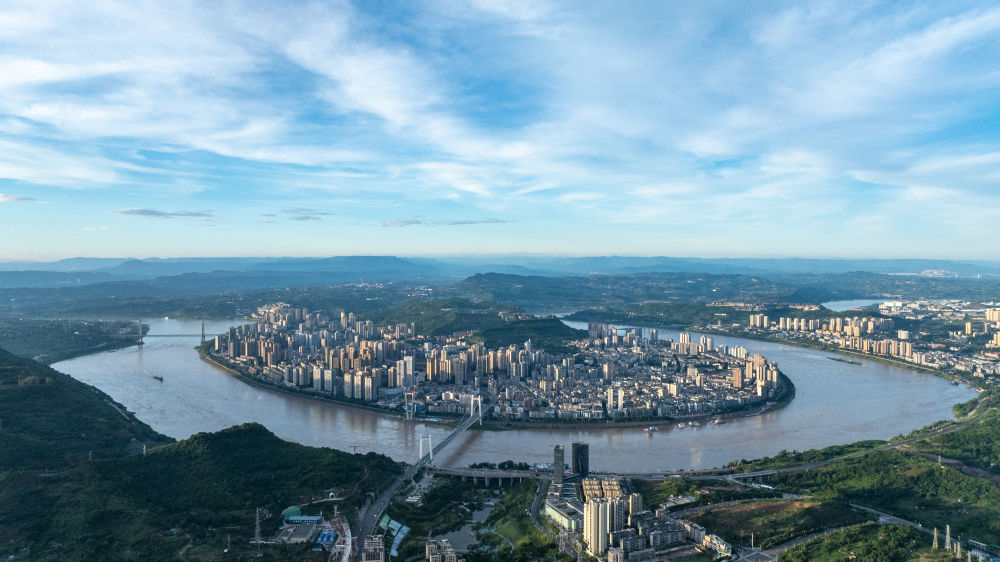 長(zhǎng)江浩蕩入渝,首經(jīng)江津。重慶江津區(qū)因其位于長(zhǎng)江要津而得名,在127公里江岸線上勾勒出“長(zhǎng)江九曲”的壯麗畫卷。在幾江長(zhǎng)江大橋北岸,記者看到城市樓群沿著山坡而建,遠(yuǎn)遠(yuǎn)望去,仿佛是從崖壁上自然生長(zhǎng)出的一片垂直森林,充滿了生機(jī)與活力。