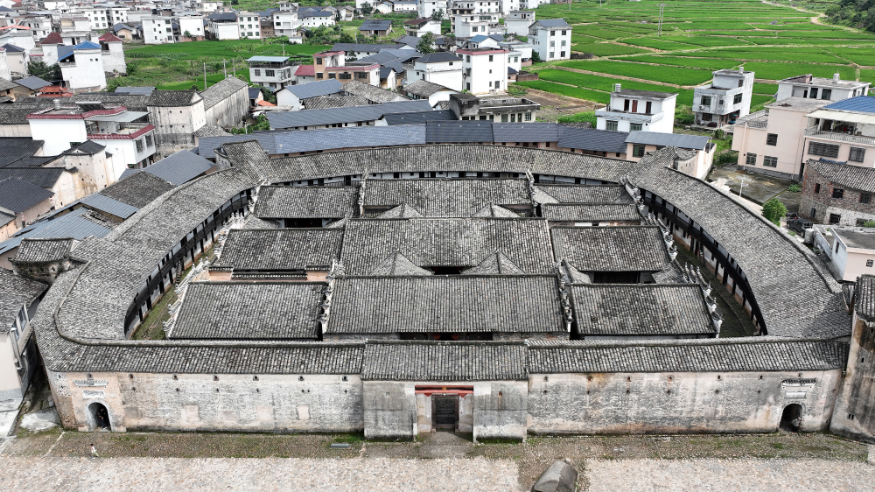 江西南部,龍南的青山翠谷間,376座圍屋錯(cuò)落分布。這里匯集了贛南70%以上的圍屋,被譽(yù)為“圍屋之都”。在魏晉南北朝至宋元之交,戰(zhàn)亂硝煙數(shù)度漫卷中原,客家先民陸續(xù)背負(fù)行囊南遷。他們踏入龍南這片山高林密的“世外桃源”,用黃土夯筑起集家、祠、堡于一體的圍屋。
