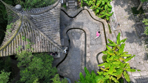 章江、貢江、贛江交織構(gòu)成江西贛州“三江六岸”的城市框架,這座千年州府佇立在水的臂彎。北宋時(shí)期,虔州(今贛州)知州劉彝根據(jù)當(dāng)?shù)氐牡匦蔚貏?shì)特點(diǎn),主持規(guī)劃建設(shè)古城街道和排水干道系統(tǒng)。這套地下排水系統(tǒng),因排水溝的走向形似古篆體的“福”“壽”二字而得名福壽溝。